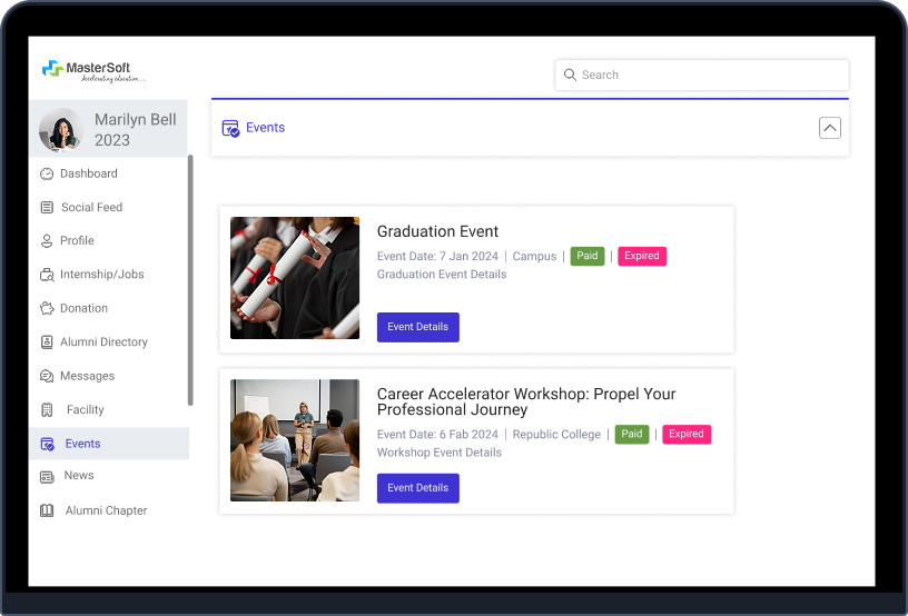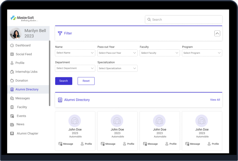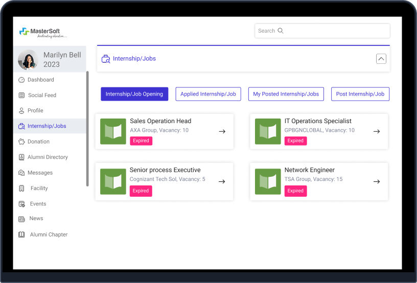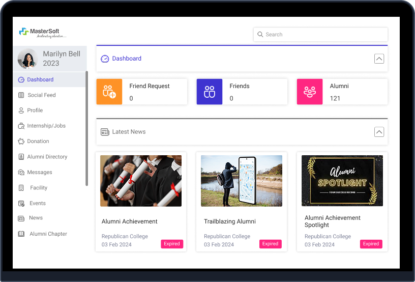 Alumni relationships go beyond annual conventions and convocations and relevant strategies are central to maintaining continuous institute-alumni relationships. MasterSoft’s Alumni Management System creates a digital platform, allowing alumni to connect, reconnect, contribute, progress professionally and engage with their institute actively.